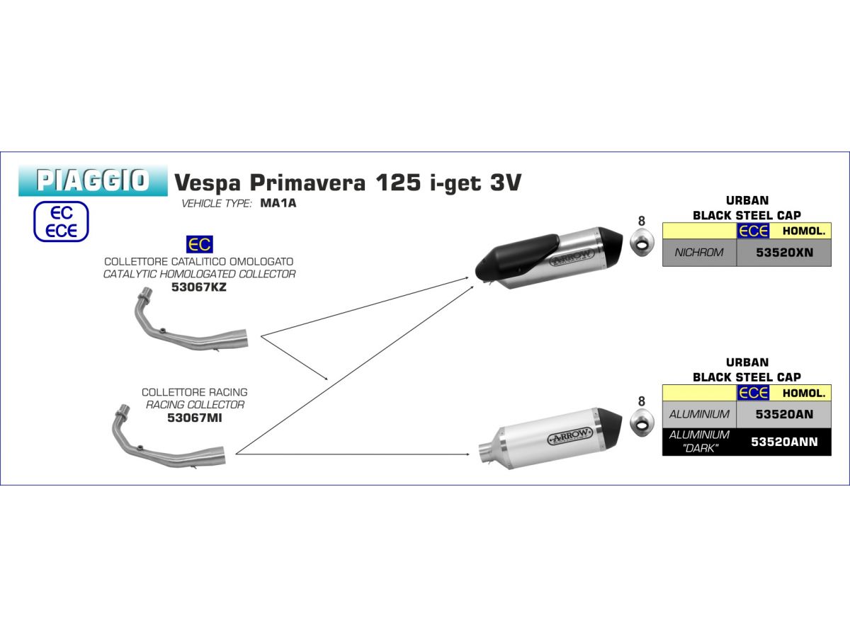 Arrow Vespa Primavera I-Get 125'17/18 Homolog. Aluminium Dark Urban Sil.With Stainless Steel Dark End Cap For Arrow Collector 53520ann