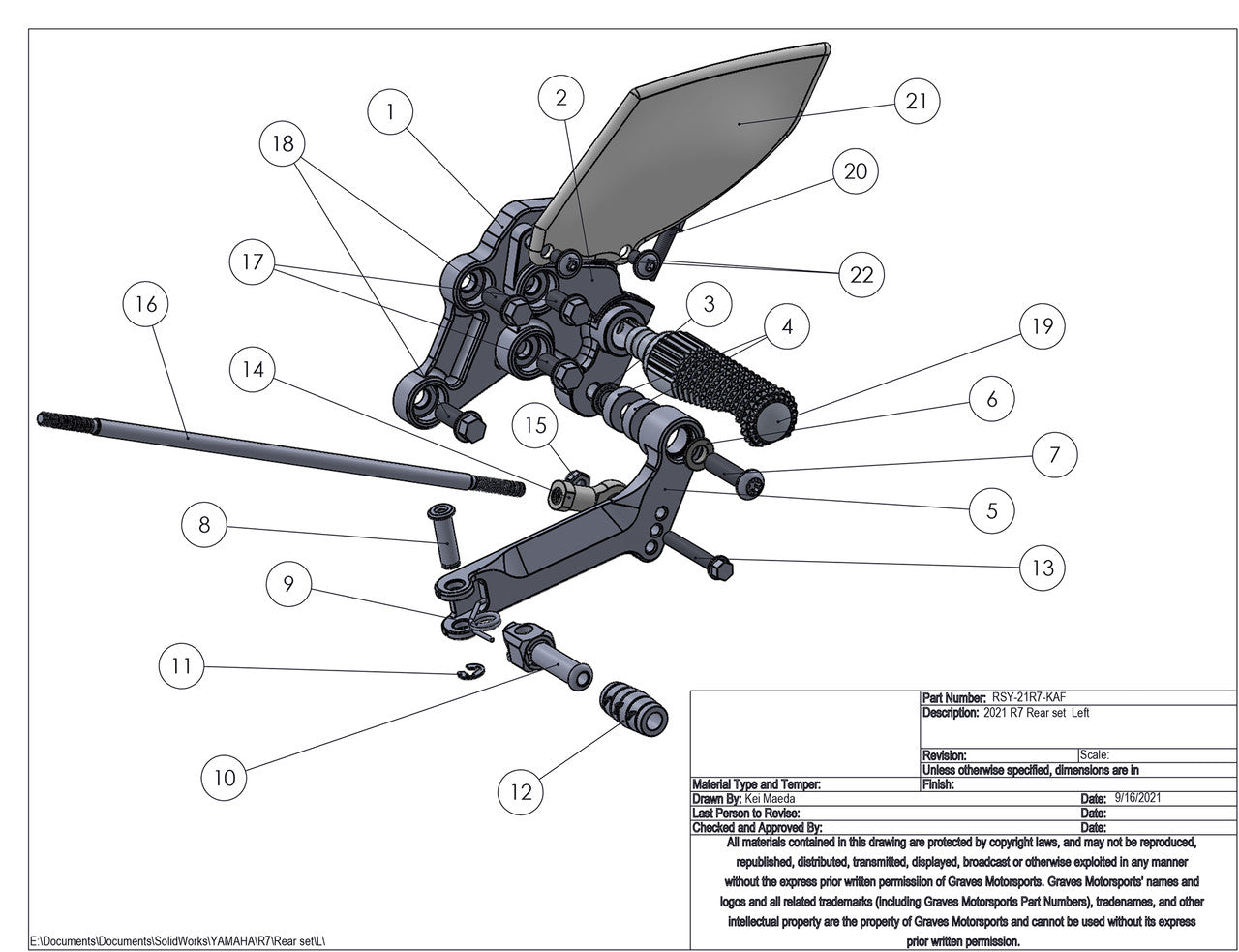 Graves Motorsports Adjustable Rearsets R7 2021-2024 Rsy-21r7-Kaf