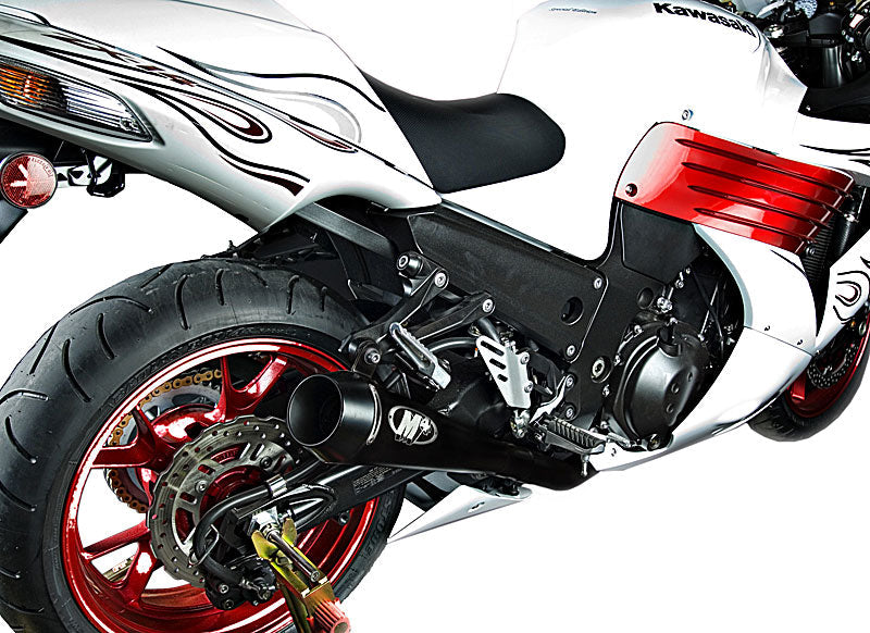 Dual stainless steel canisters ceramic coated black. These slip-ons transform the look of your ZX-14 while also improving performance. Saves 20 lbs over stock!