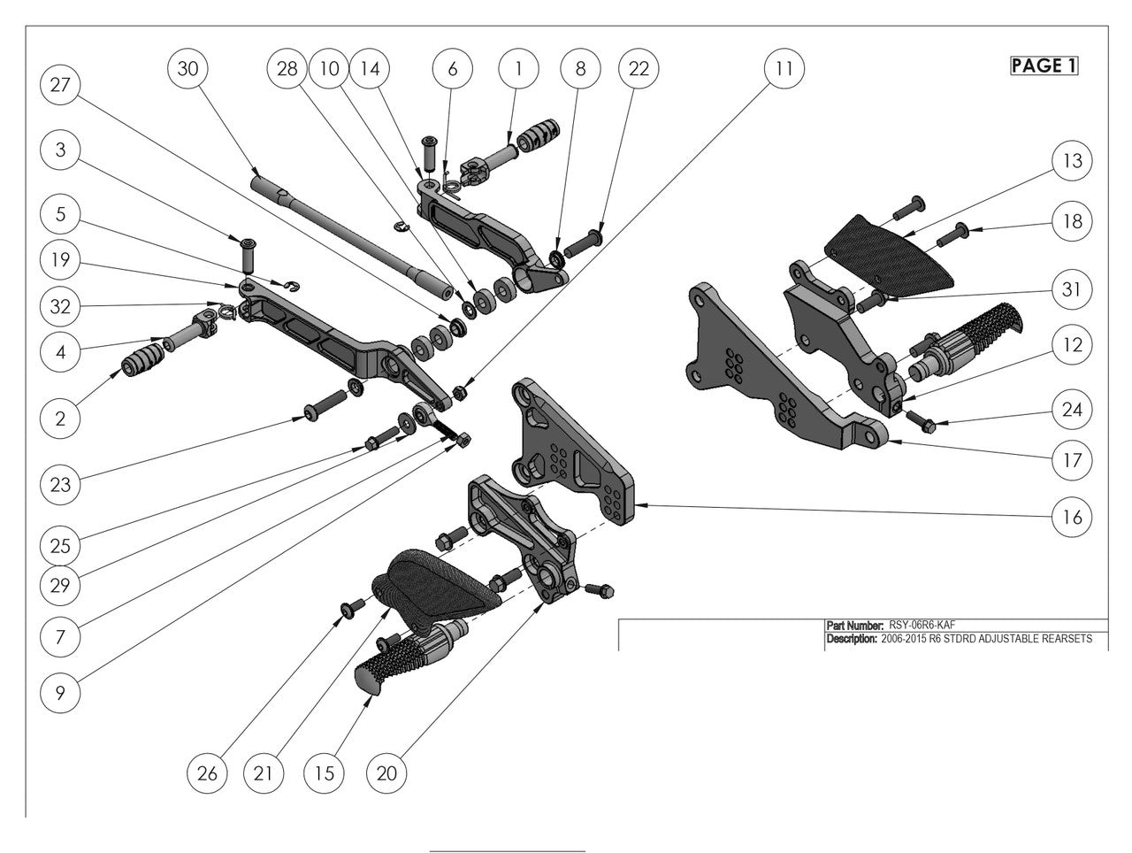 Graves Motorsports R6 Adjustable Rearsets 2006-2022 Rsy-06r6-Kaf