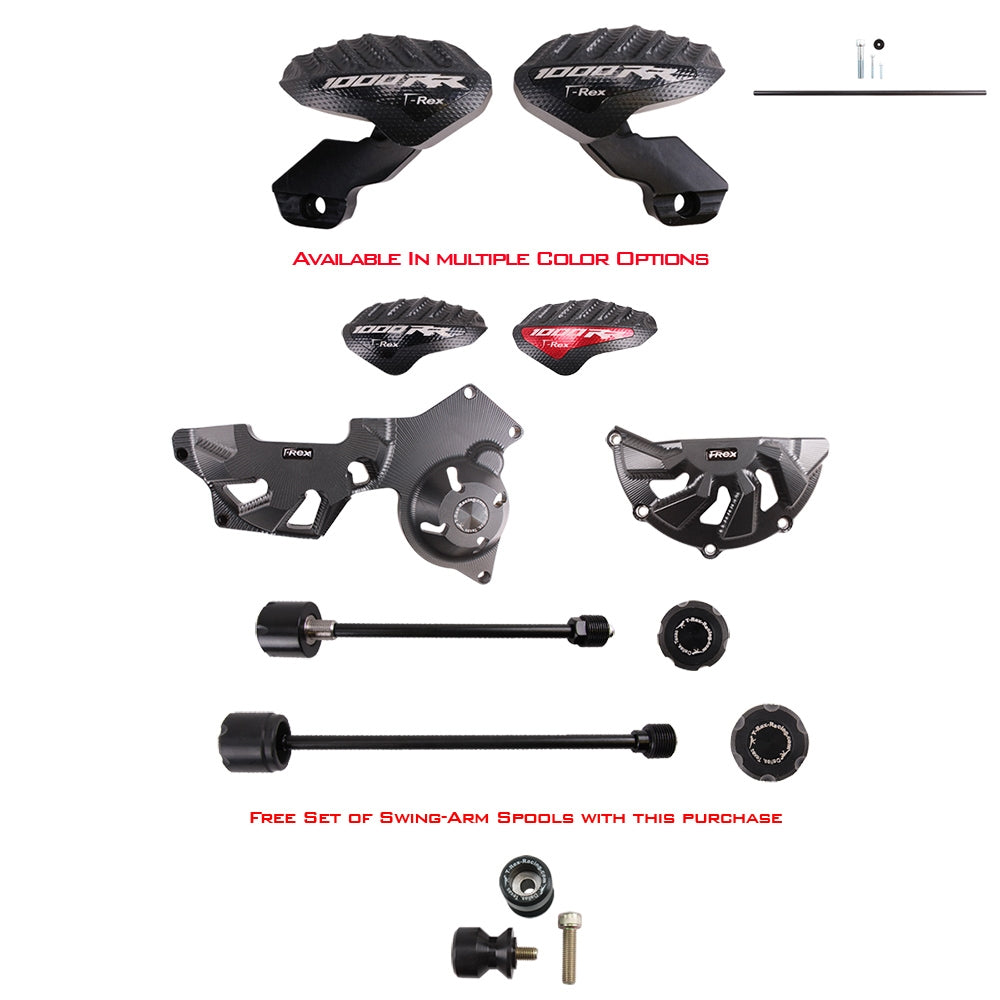 T-rex racing 2017-2023 CBR1000RR no cut frame front & rear axle sliders case covers spools BlaPlaSpool8